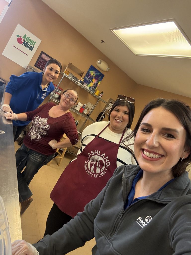 Associates Nori Lester, Stephanie Dean and Alyssa Ramey-Coleman volunteered at the Ashland Community Kitchen in Kentucky, serving meals and supporting our neighbors in need. Their volunteerism is part of our PB&Joy initiative to fight food insecurity.